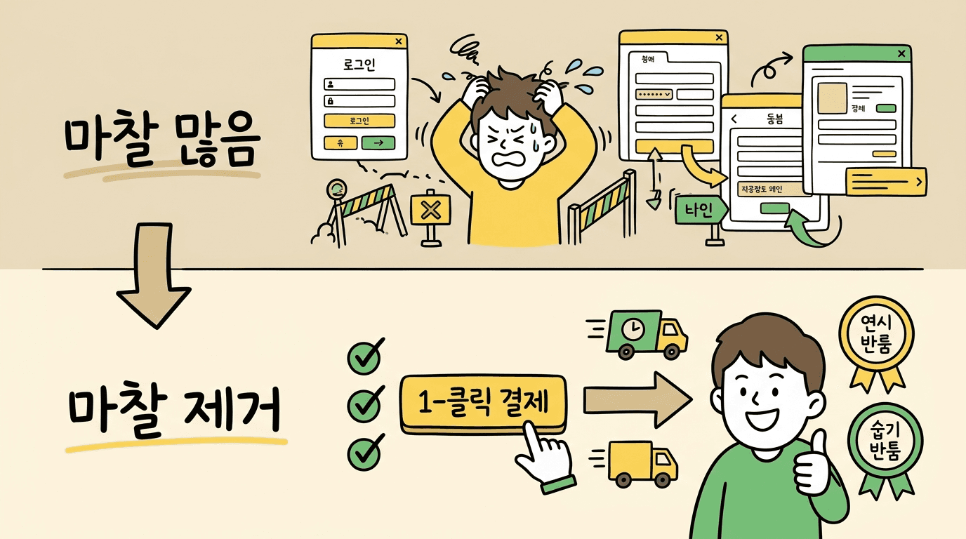 아마존의 '1-Click 주문'이 혁명이었던 이유를 기억하세요. 구매 과정에서 클릭 한 번을 줄인 것이 수조 원짜리 서비스가 됐습니다.