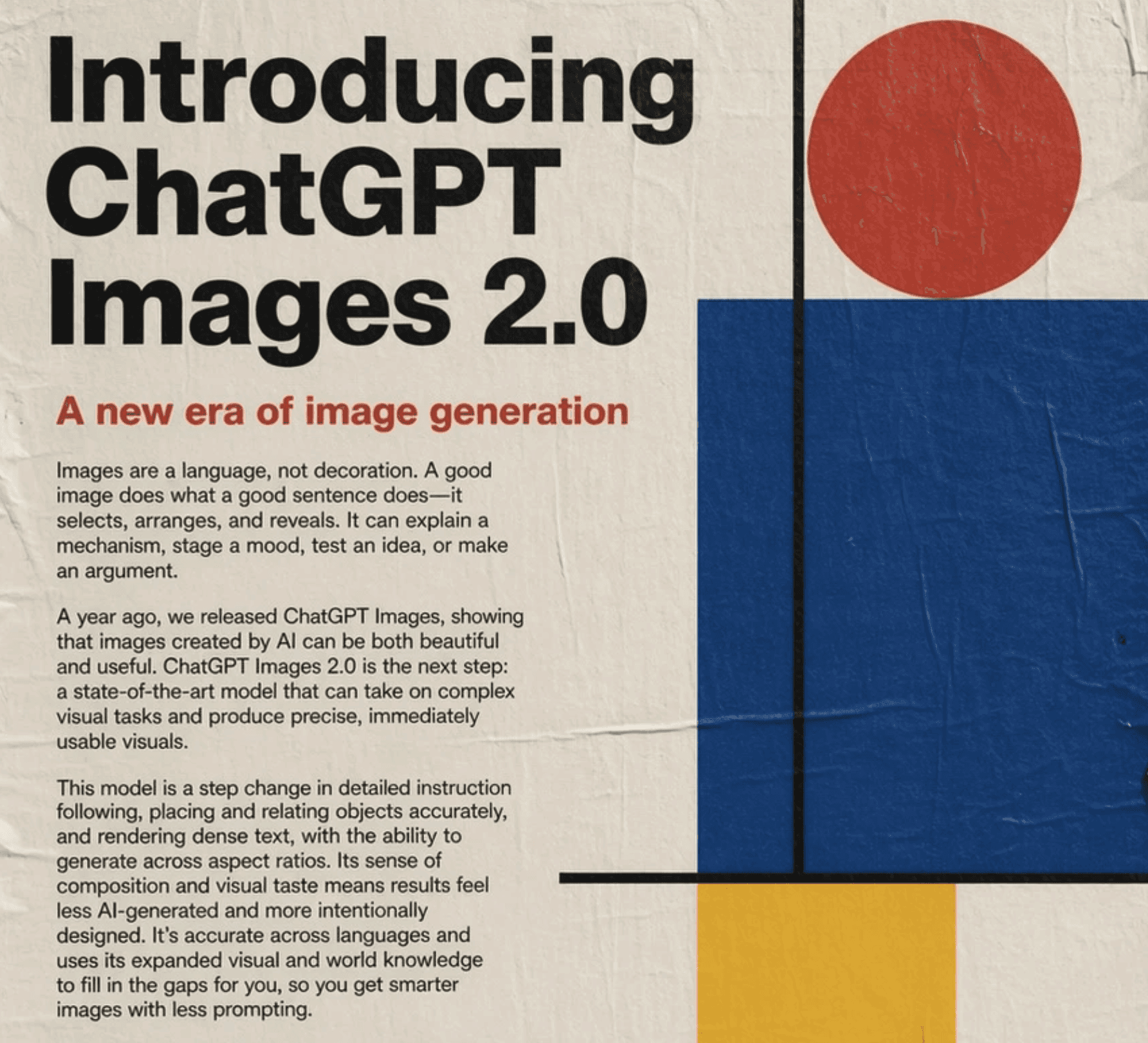 OpenAI가 2026년 4월 21일, ChatGPT 이미지 2.0을 공개했습니다.