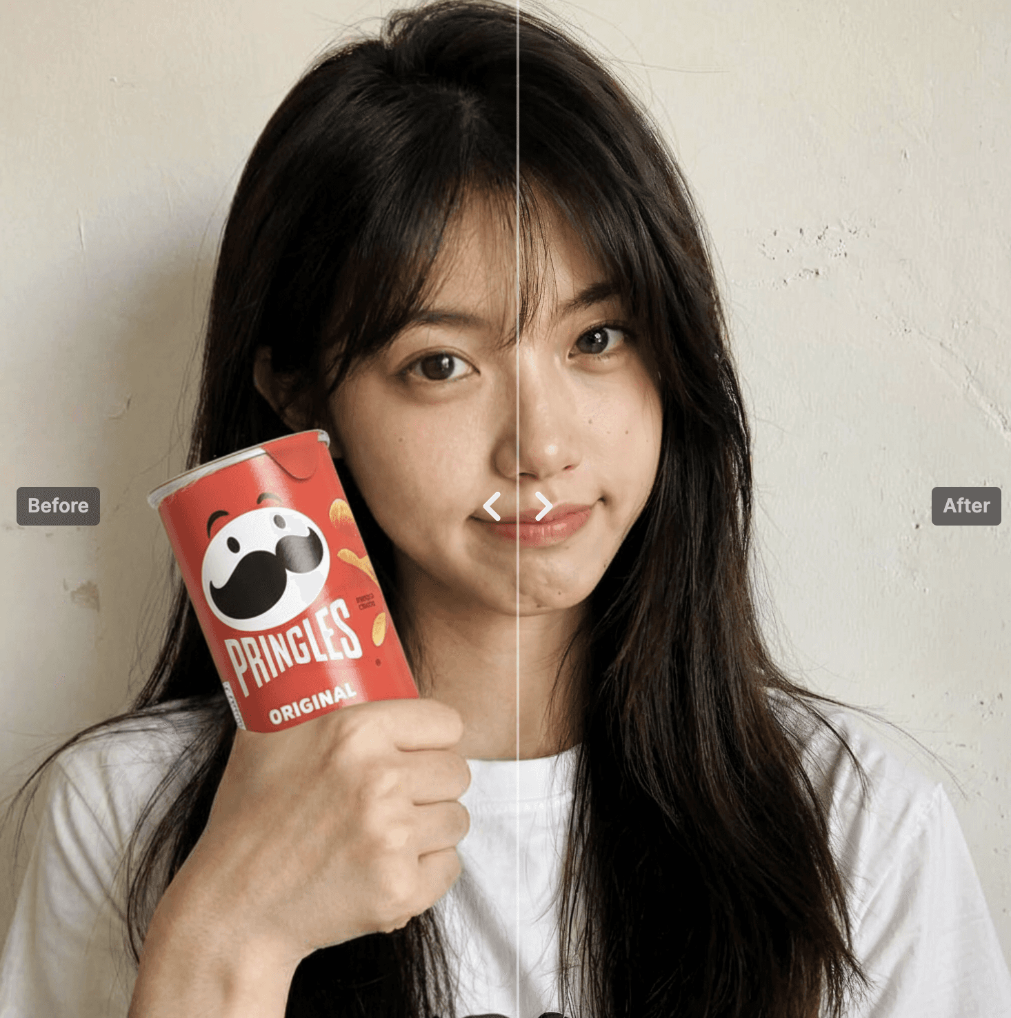 Before: 업스케일만 한 이미지 → 해상도는 높지만 평면적이고 피부 톤 불균형
