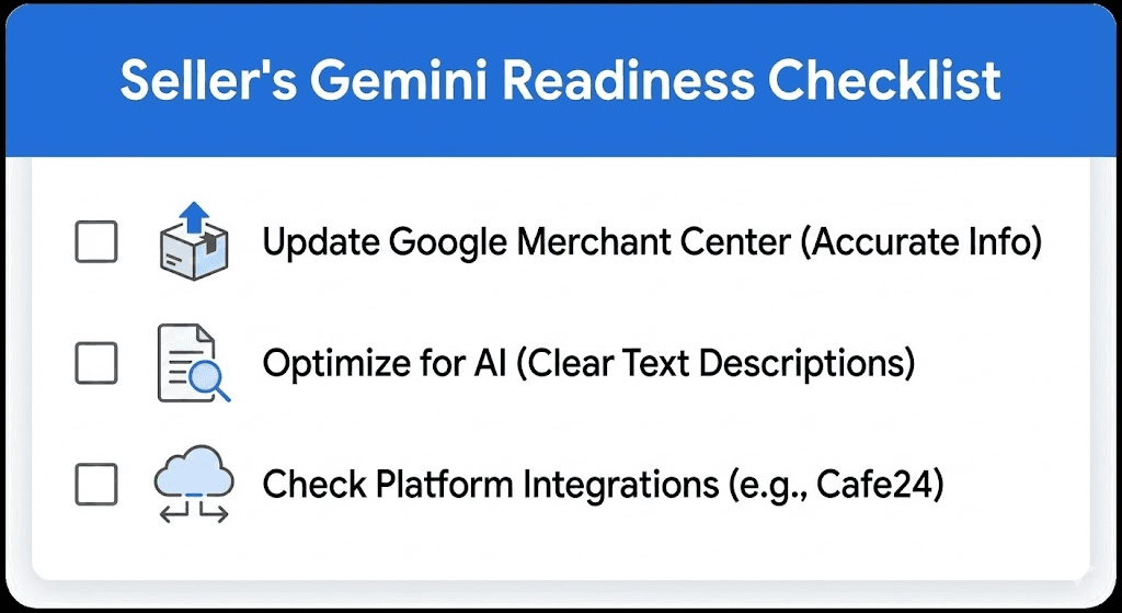 구글 머천트 센터(GMC) 관리 필수! : GMC는 우리 쇼핑몰의 상품 정보를 구글에 등록하는 곳이에요. 여기에 상품명, 가격, 이미지 정보가 정확하게, 최신 상태로 업데이트되어 있어야 제미나이가 우리 물건을 알아봅니다. 오늘 당장 로그인해서 확인해보세요!