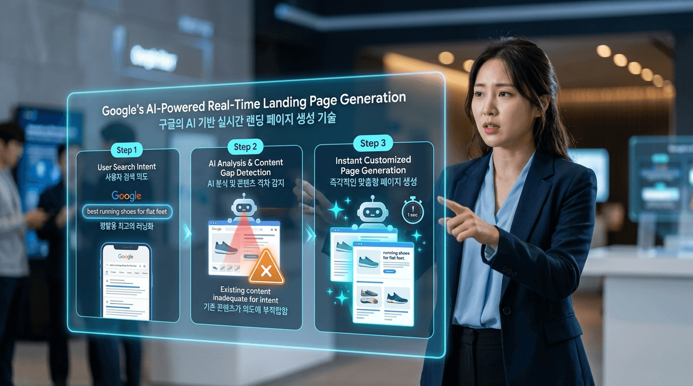 구글의 AI가 보기에 우리 웹사이트가 유저의 세밀한 검색 의도(예: 40대 남성, 비 오는 날, 제주도 등산)를 완벽하게 충족하지 못한다고 판단하면, 기존 URL 링크를 주는 대신 AI가 우리 브랜드 데이터를 긁어모아 '맞춤형 랜딩페이지'를 1초 만에 자동 생성해 준다는건데요.