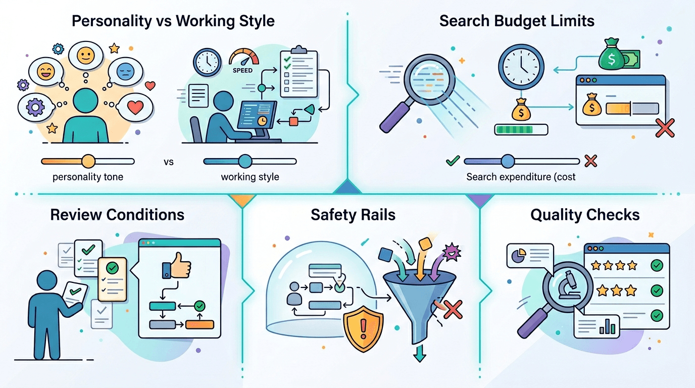 성격은 “따뜻하게 말해줘”, “간결하게 말해줘”에 가깝고, 일하는 방식은 “언제 질문하고, 언제 가정해서 진행하고, 언제 검수할지”에 가깝습니다.