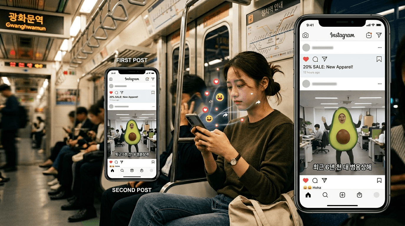 사람들은 재밌는 영상을 보면 끝까지 보고(시청 지속 시간), 친구를 태그하고(공유), 댓글을 답니다. SNS 알고리즘은 이런 영상을 '좋은 콘텐츠'로 인식해 수만, 수십만 명의 피드에 공짜로 꽂아줍니다.친근감이 매출을 부릅니다