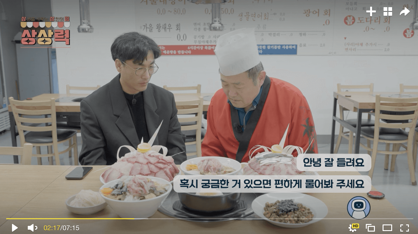 70대 횟집 사장님이 떨리는 손으로 스마트폰을 들고 물으셨습니다.