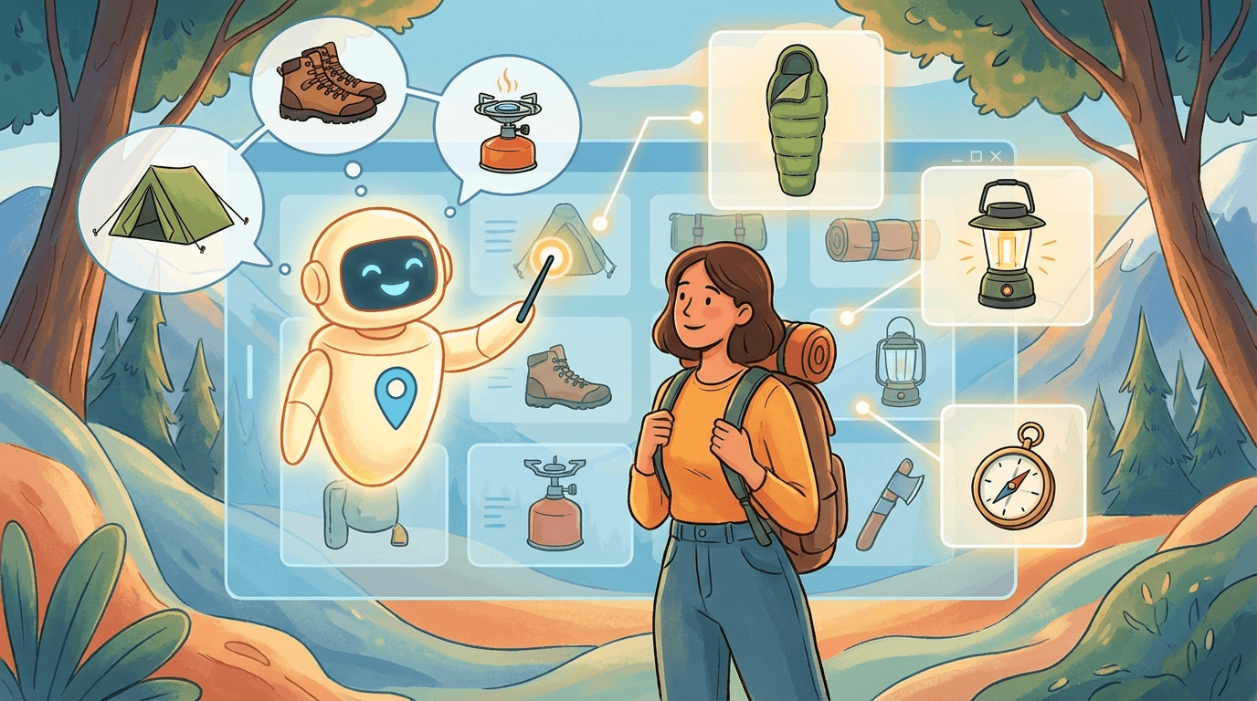 이 친구의 핵심 임무는 단순한 키워드 검색을 넘어서는 것입니다. 고객이 "주말에 캠핑 갈 건데, 뭐가 필요할까?"라고 두루뭉술하게 물어보면, 스파키는 텐트부터 바비큐 그릴, 랜턴, 심지어 모기기피제까지 캠핑에 필요한 물품들을 쫙 뽑아서 추천해 줍니다. 과거에는 일일이 검색해서 장바구니에 담아야 했던 수고를 덜어준 거죠.