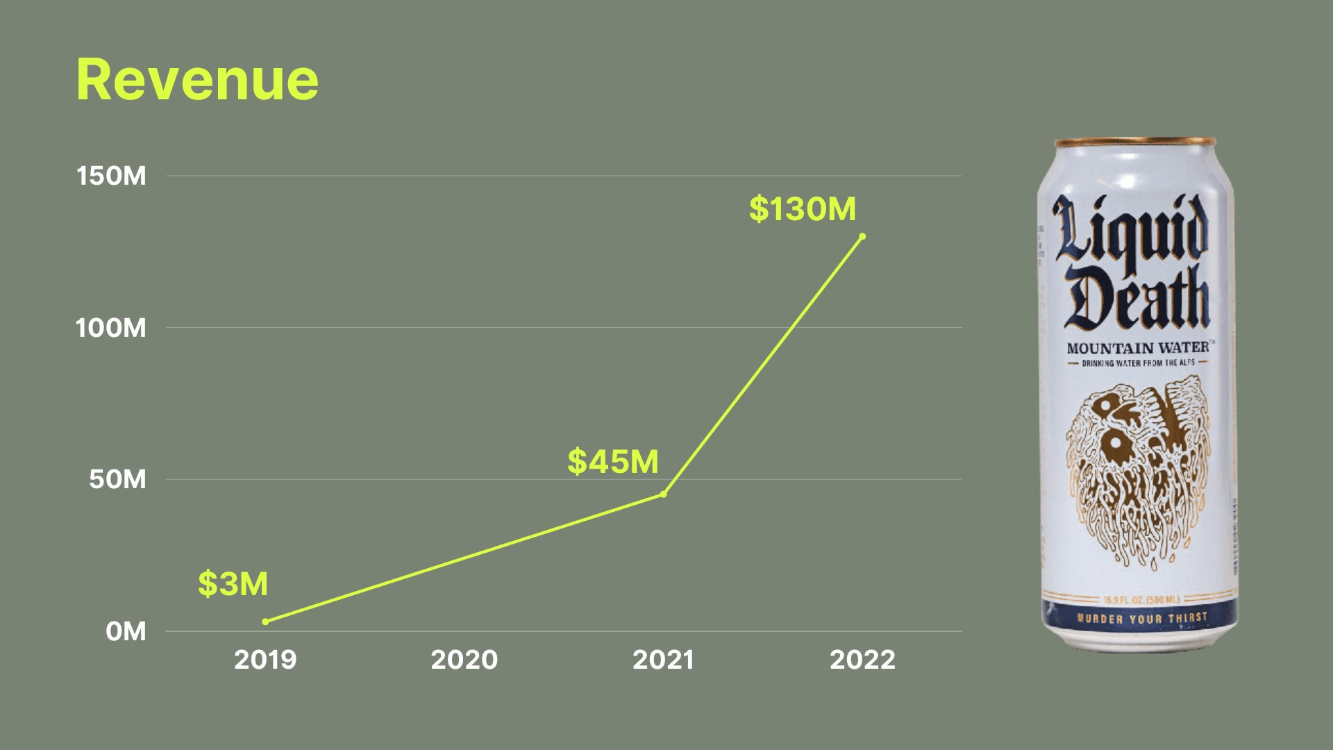 세상에서 가장 경쟁이 심하고, 가장 지루하고, 코카콜라와 네슬레가 장악한 생수 시장에 뛰어들어, "리퀴드 데스(Liquid Death, 액체 죽음)"라는 요망한 이름으로 승부를 건 마이크 세사리오의 이야기를 함께 보시죠.