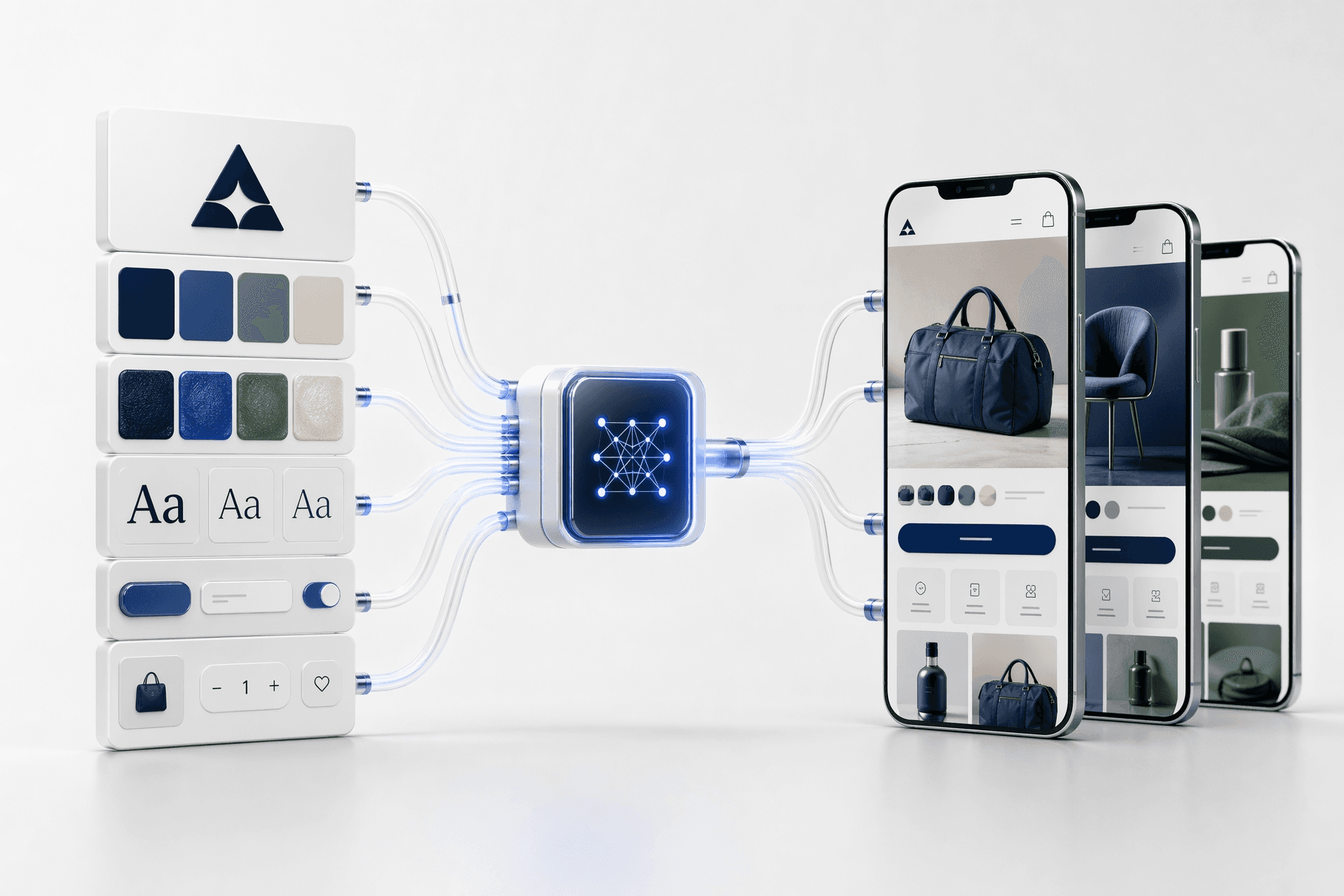 ✅ Step 2: 디자인 시스템 동기화 자사몰의 브랜드 컬러(메인/서브) 및 폰트 가이드를 업로드하여 시스템에 완벽하게 연동시킵니다.