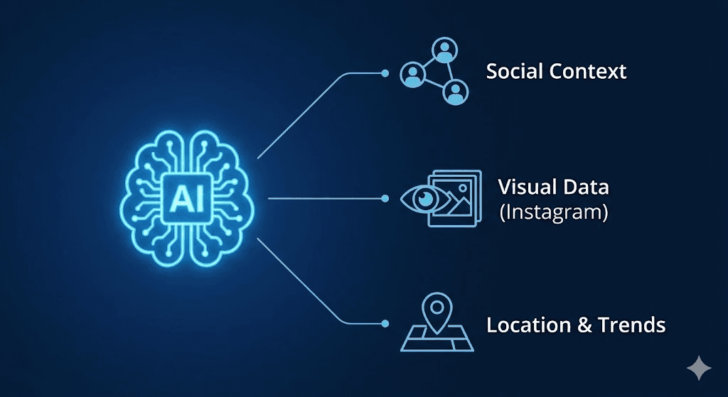 여기에 친구 관계, 활동 지역 같은 사회적 맥락(Context) 데이터가 더해집니다.