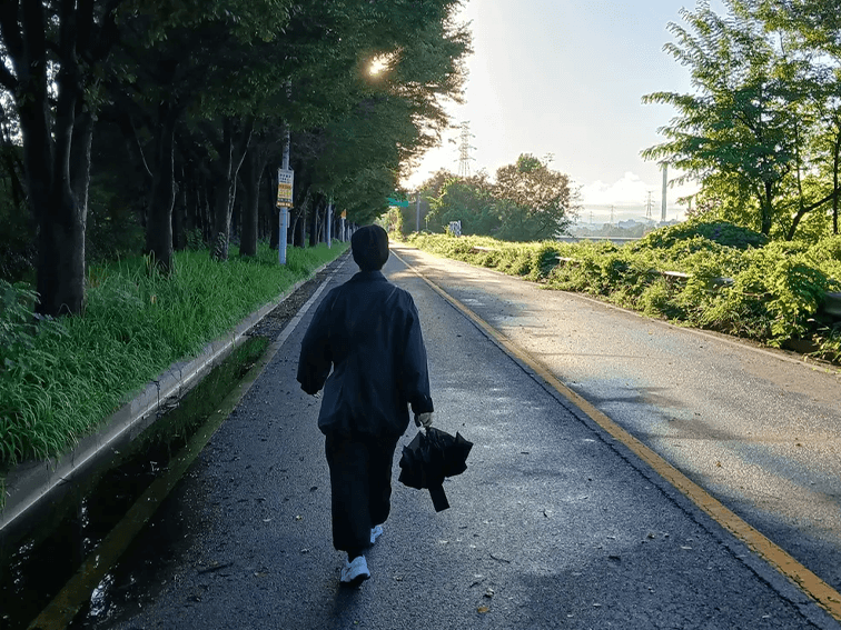 재활을 위해 산책하는 김새섬 대표의 모습. 그가 생각하는 ‘좋은 죽음’이란 고통을 줄이고 사랑하는 이들과 관계를 잘 마무리하는 것이다. ©그믐 인스타그램