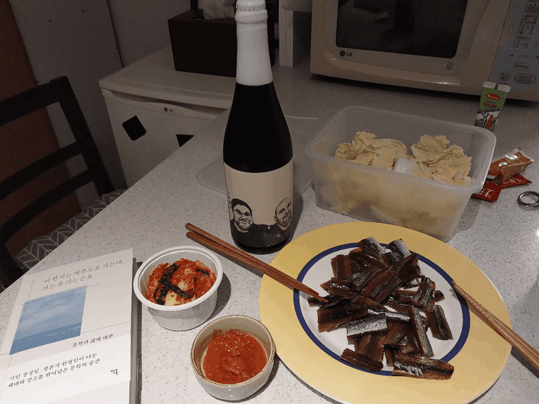 김새섬 대표와 남편 장강명 작가는 매년 12월 31일 저녁, 각자 유서를 쓰고 서로에게 읽어주는 의식을 치른다. 사진은 김새섬 대표가 그믐 블로그를 통해 공유한 과메기와 와인. ©김새섬 그믐 블로그