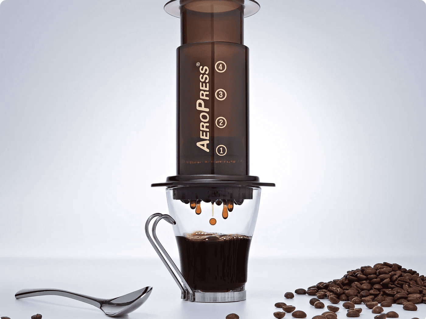 에어로프레스는 2005년 발명가이자 사업가 앨런 애들러가 발명한 수동 커피 추출 도구다. 주사기처럼 압력을 이용해 커피를 뽑아내는 직관적인 구조가 특징이다. Ⓒ에어로프레스